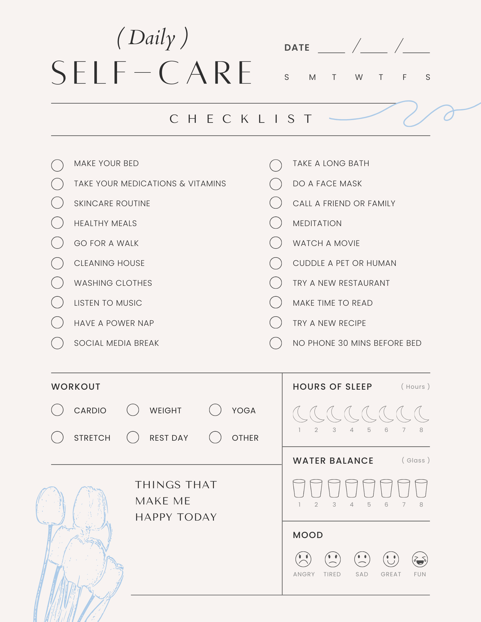 Printable Self Care Checklists
