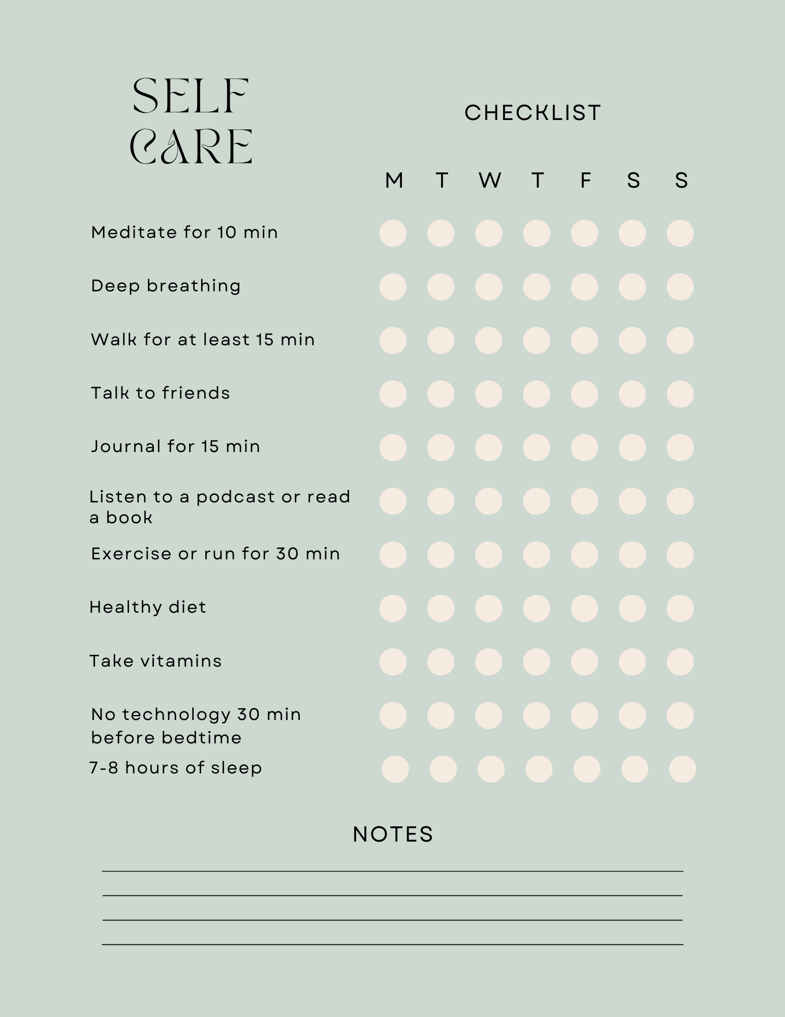Self Care Checklists